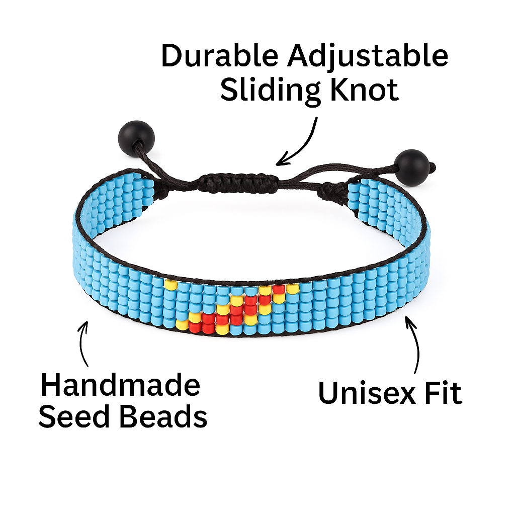Congo Flag Bracelet: Handmade Bracelet, Adjustable Beaded String with Patriotic Design