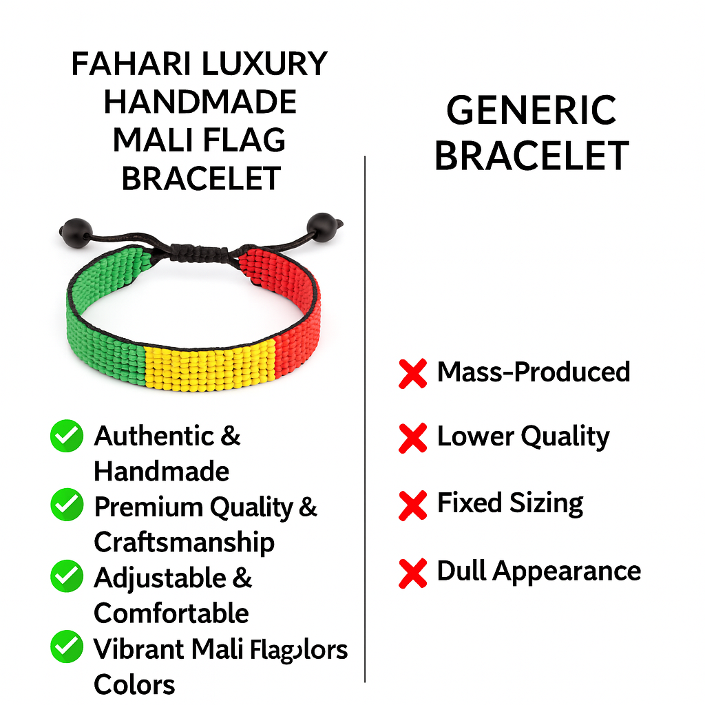 Bracelet drapeau du Mali : Bracelet bohème ajustable fait à la main avec motif patriotique