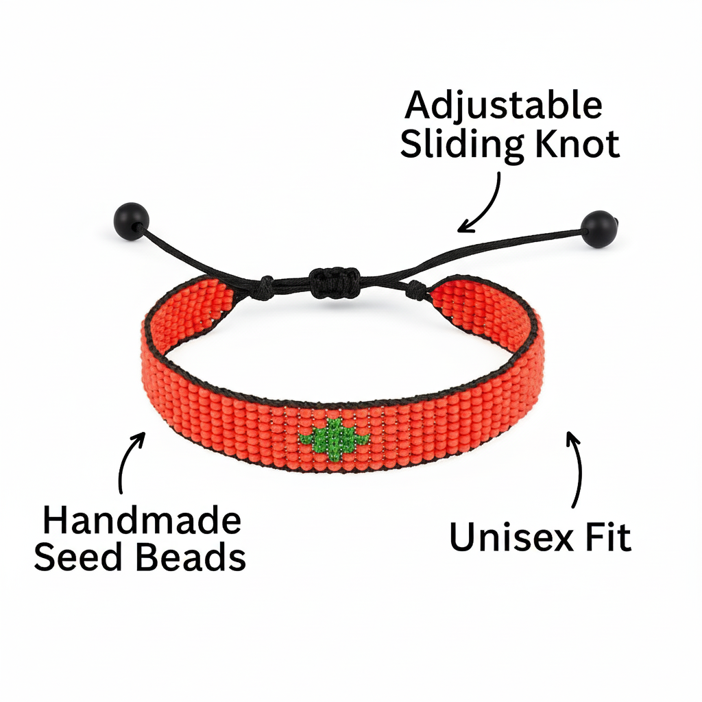 Bracelet drapeau du Maroc : Bracelet cordon perlé fait main, réglable, style bohème, avec motif patriotique