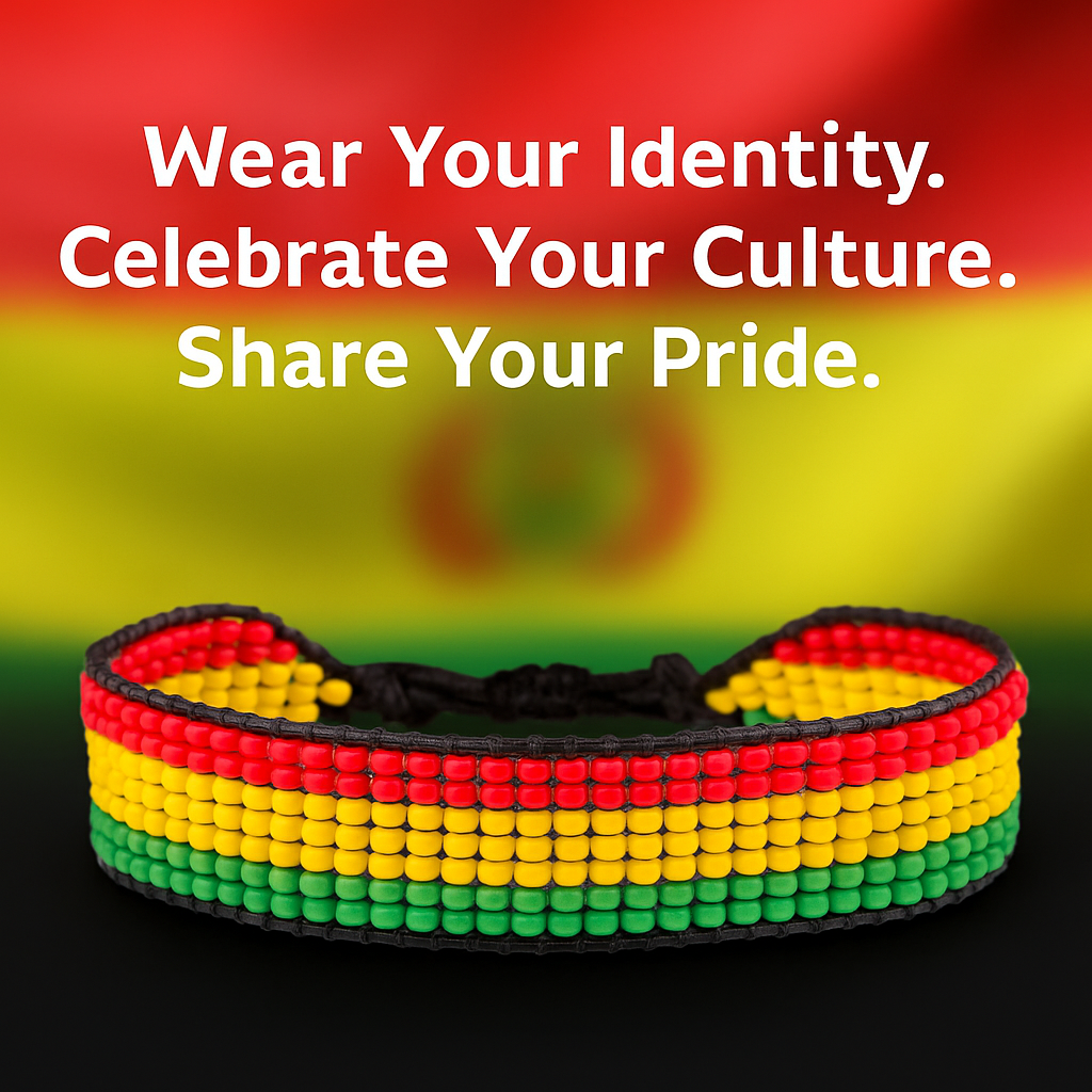 • Bolivia Flag Bracelet: Handmade Bracelet, Adjustable Beaded String with Patriotic Design