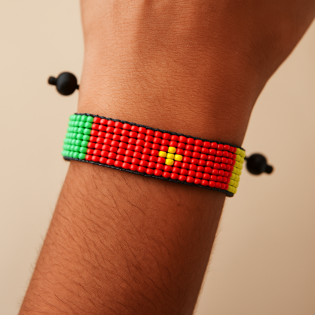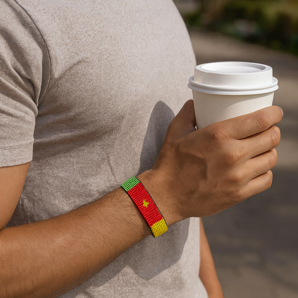 Cameroon Flag Bracelet: Handmade, Adjustable Beaded String Wristband