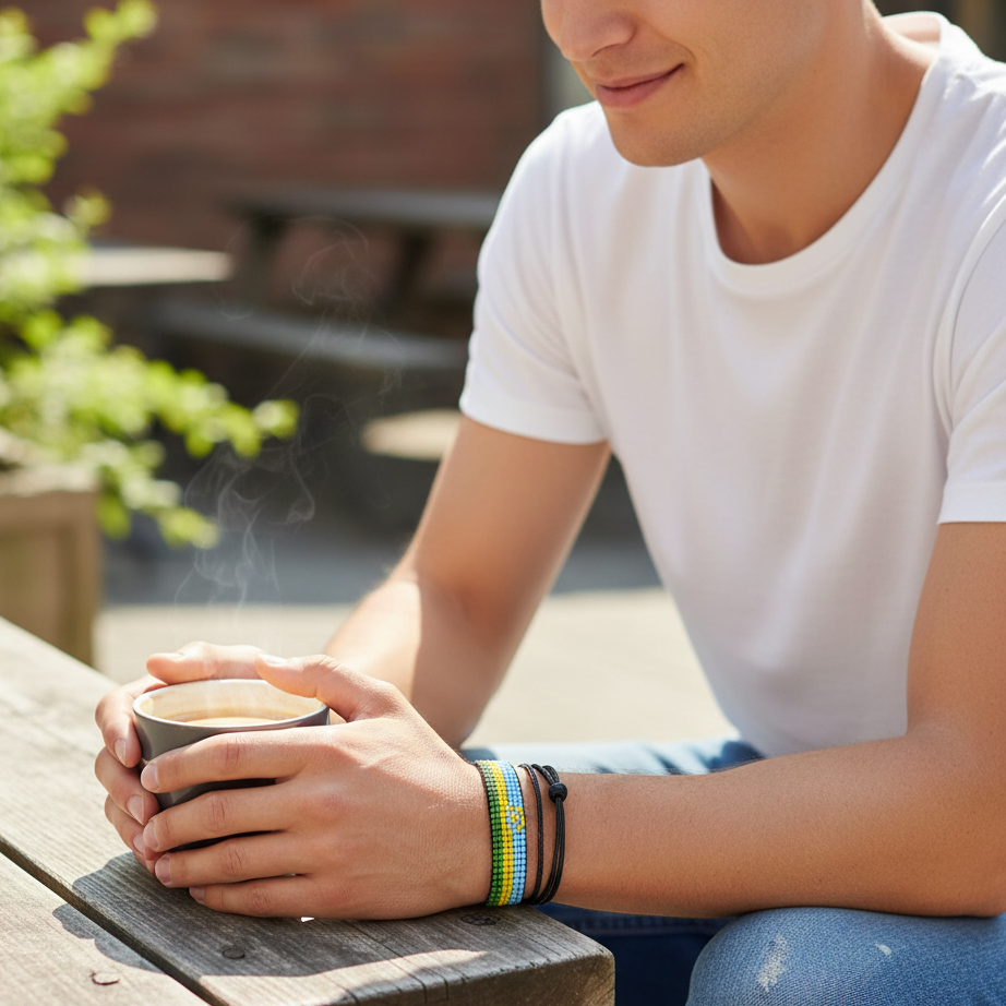 Rwanda Flag Bracelet: Handmade, Adjustable Boho-Style Rope Bangle with Patriotic Design